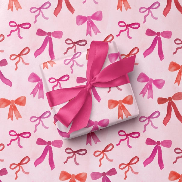 Celebrate the coquette aesthetic with this bow gift wrap! Wrapping paper sheets featuring hand-painted watercolor bows in shades of pink and red.